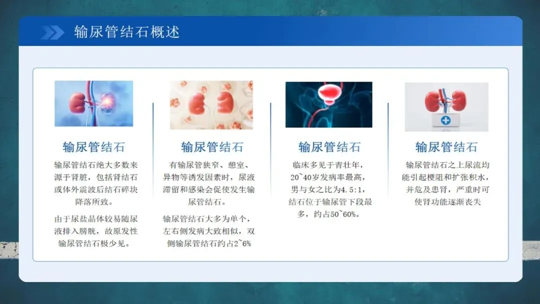 大家好,今天我们来谈谈“输尿管结石”这个话题。很多人可能听说过,但未必清楚它到底是什么、该如何应对。希望通过这短短的分享,帮助大家更好地认识和预防输尿管结石。