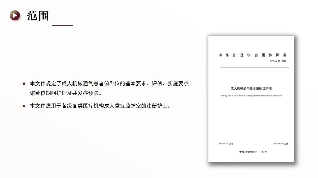 当前位置:首页>PPT>【PPT】成人机械通气患者俯卧位护理——中华护理学会团体标准 T/CNAS 23─2023 解读