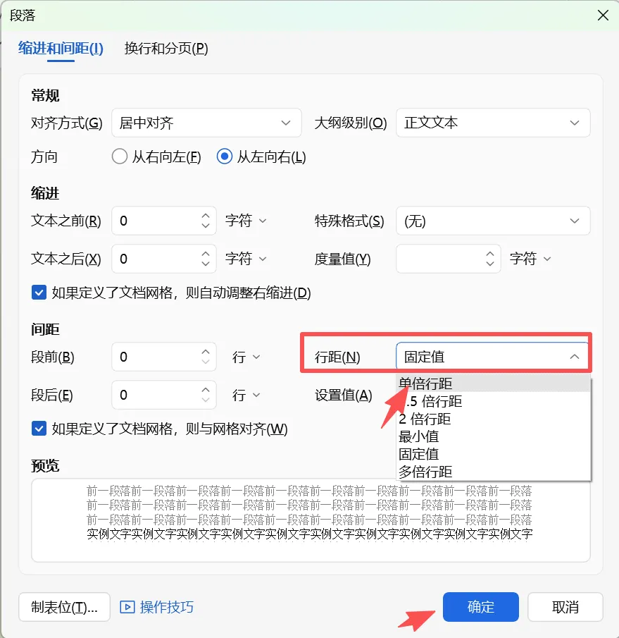 修改行间距: