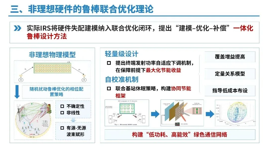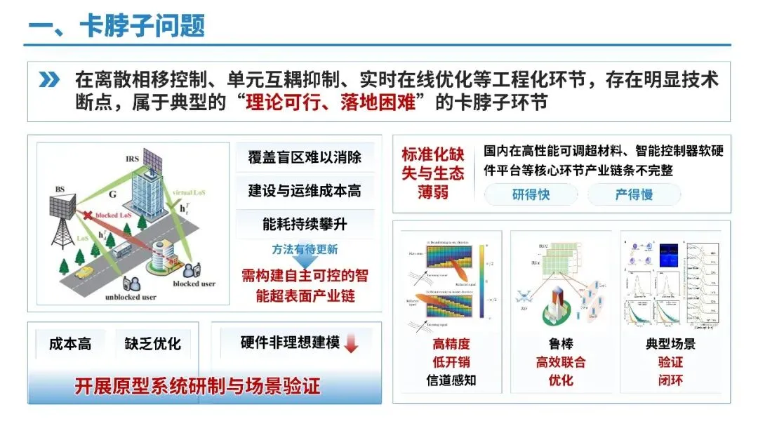该PPT系统阐述了智能反射面辅助通信系统优化设计项目,旨在申报广东省科学技术奖。研究聚焦低开销信道感知、非理想硬件鲁棒优化、多IRS协同等关键技术,致力于推动智能反射面从理论走向应用,为绿色低碳通信、网络覆盖增强及产业生态构建提供核心技术支撑。该项目聚焦智能反射面辅助通信系统优化设计研究,申报广东省科学技术奖。项目旨在通过信道建模、低开销感知、多目标协同优化等关键技术,推动智能反射面从“理论可行”向“落地应用”跨越,为构建绿色、高效、主动可控的新一代无线通信系统提供核心解决方案,服务国家双碳战略与通信产业升级。PPT围绕“需求—问题—技术—应用”主线展开。研究内容重点针对信道感知开销大、硬件非理想、多IRS协同难等卡脖子问题,提出几何建模与稀疏结构融合的低开销信道感知机制、硬件失配鲁棒优化方法及分布式协同控制框架。创新点突出“主动塑造信道”的范式转变,但部分技术描述偏宏观,具体算法细节、实验验证与性能数据支撑可进一步强化。项目优势在于紧扣国家绿色低碳与6G前沿方向,问题导向清晰,产学研协同紧密,具备较强的应用牵引与生态构建意识。技术体系覆盖感知、优化、集成全链条,体现系统化攻关思路。不足之处在于部分关键技术指标与验证场景描述较笼统,与国内外同类研究的对比分析不足,风险应对与标准化路径的阐述可更具体。建议在答辩中进一步凸显项目在粤港澳大湾区通信产业链中的嵌入价值;补充典型场景下的性能实测数据与对比结果;明确技术成果向行业标准转化的具体路径。整体而言,项目具有明确的产业应用前景与技术创新价值,符合科技奖励的导向。整套PPT共计 17 页,源文件均可编辑和修改PPT制作相关服务,请后台留言,或者扫码联系我们