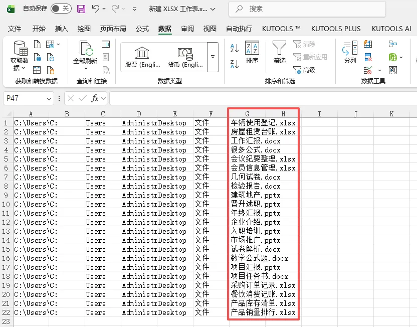文件名提取到Excel表格里的效果预览