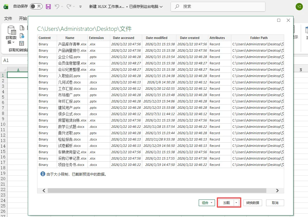 方法五:使用Excel Power Query自动导入文件名列表