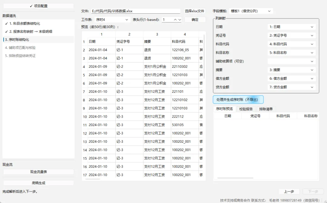 图 8:Step 3:序时账字段映射完成(生成序时账JSON/预览可检查)
