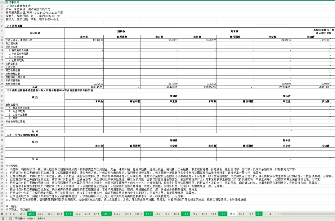 图 21:审定表示例(应付职工薪酬):审计说明/检查要点可直接作为初稿