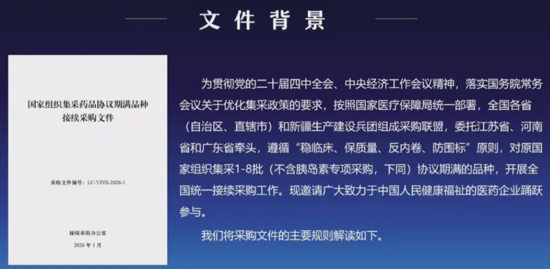 国家组织集采药品协议期满品种接续采购文件核心要点