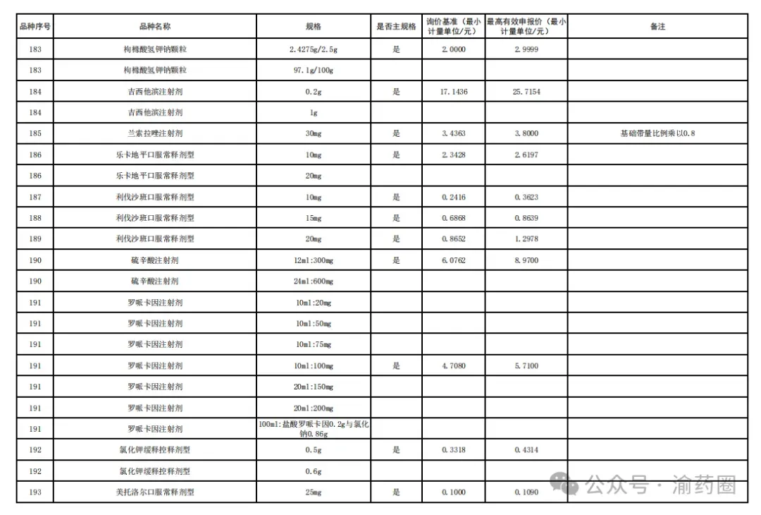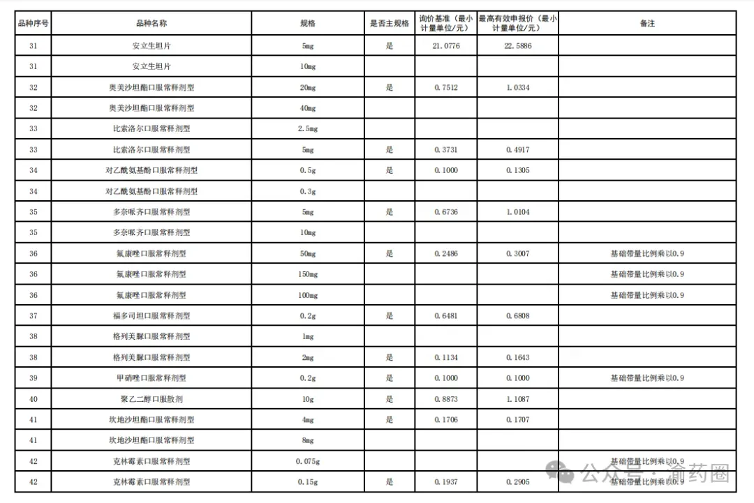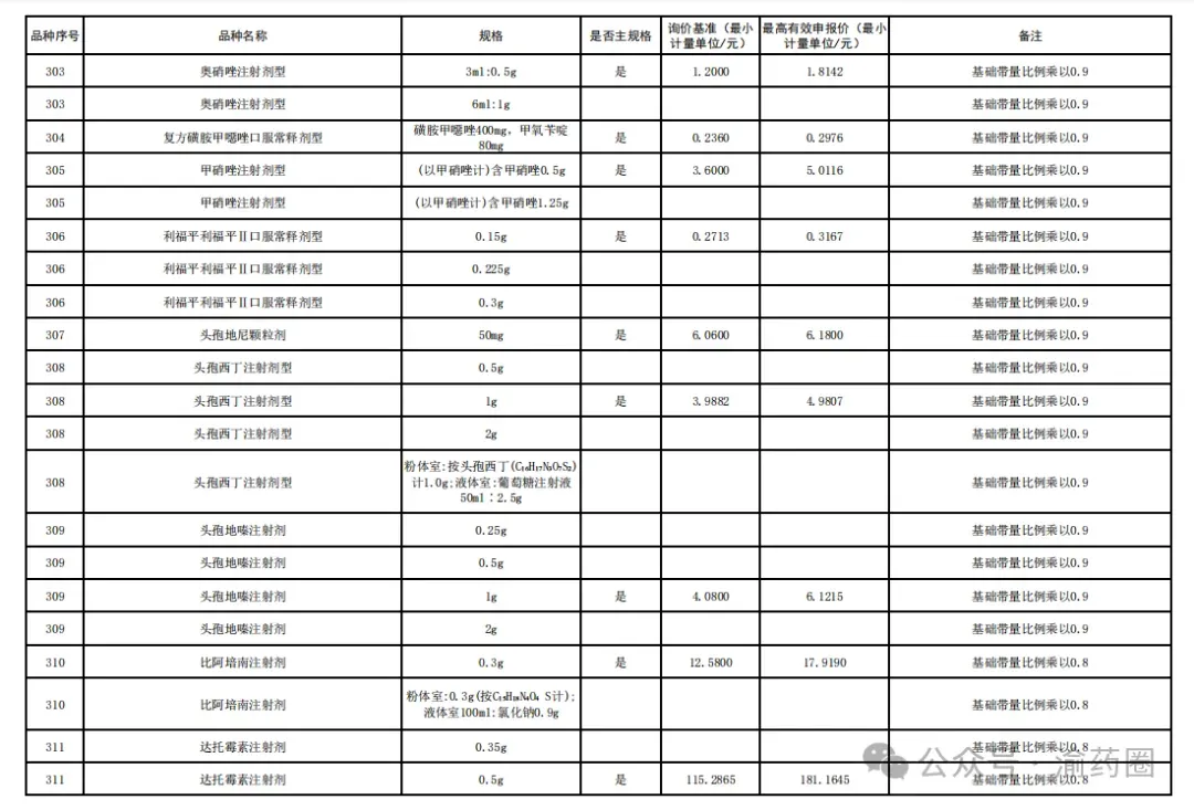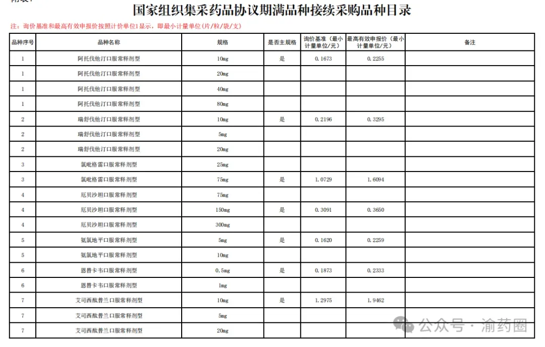 2.“供应清单”内中选药品的价格由接续采购办公室以申报品规为代表品参照药品差比价规则计算确定。