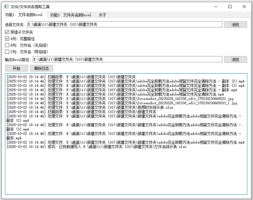 开始处理:点击「开始」按钮,系统将开始提取文件名并导出到Excel