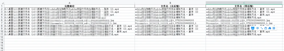 打开生成的Excel文件,即可获得完整的文件清单,包含路径和文件名信息