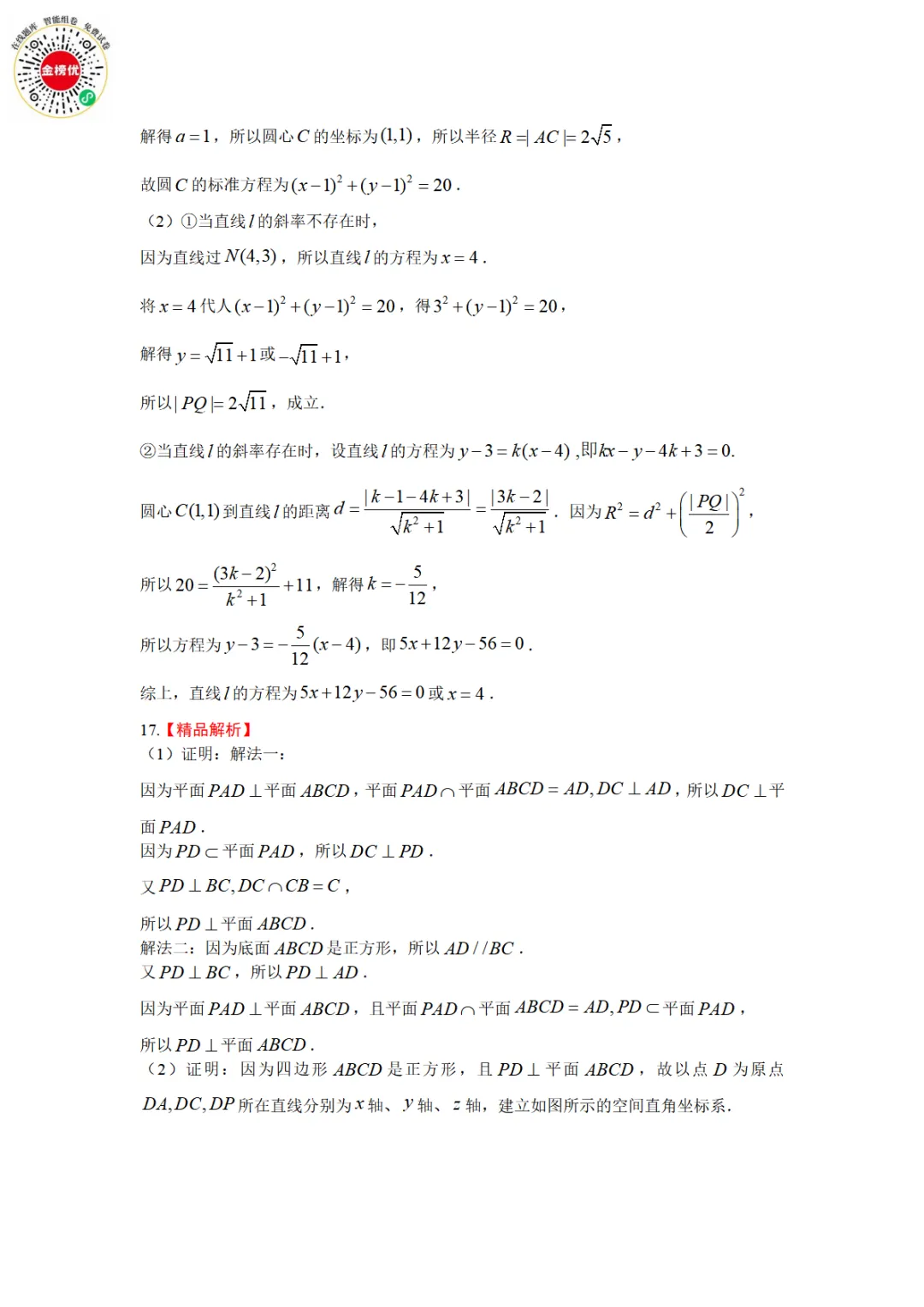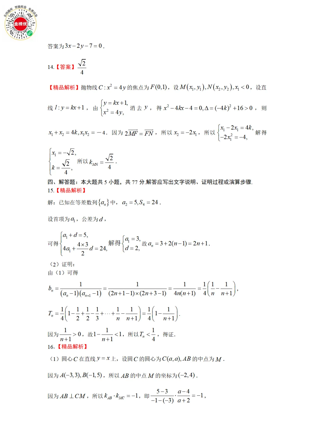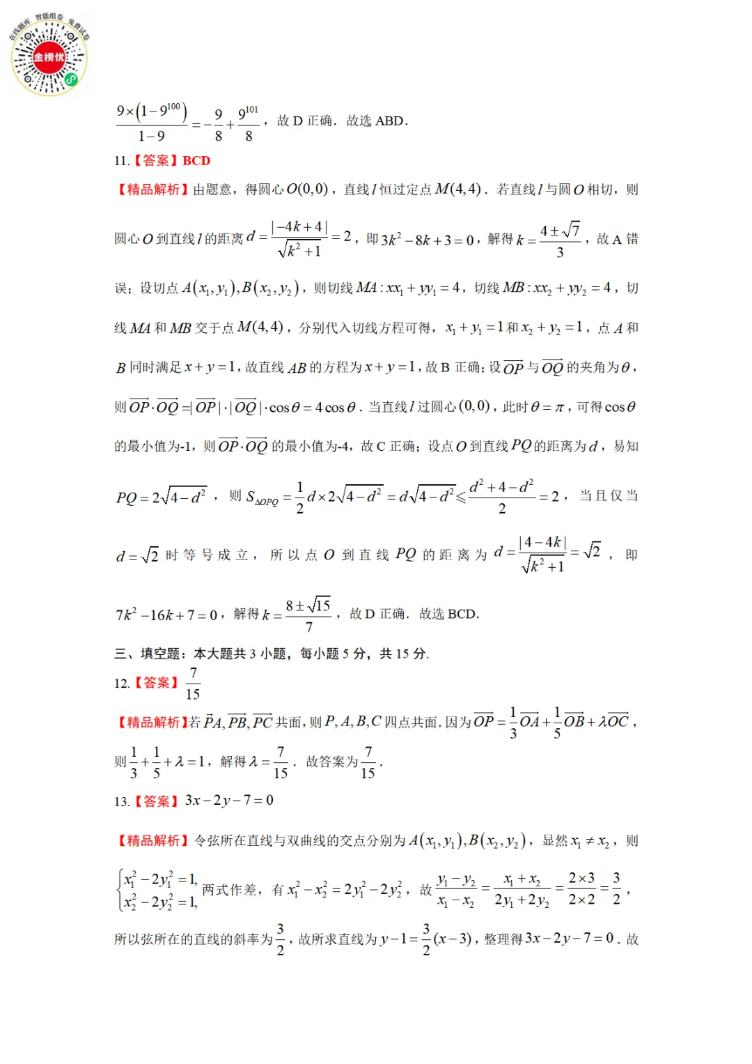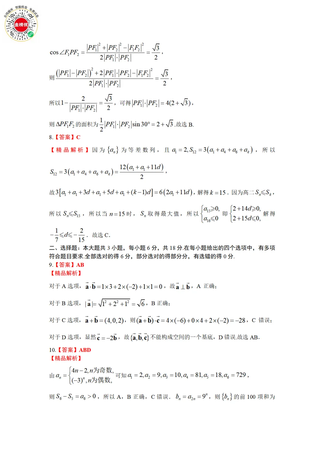 >【精品word版】河北张家口2025-2026学年度第一学期高二年级期末教学质量监测数学试题+答案