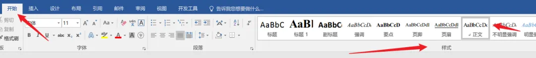 1️⃣在“开始”选项卡下的“样式”功能区找到文档应用的对应样式