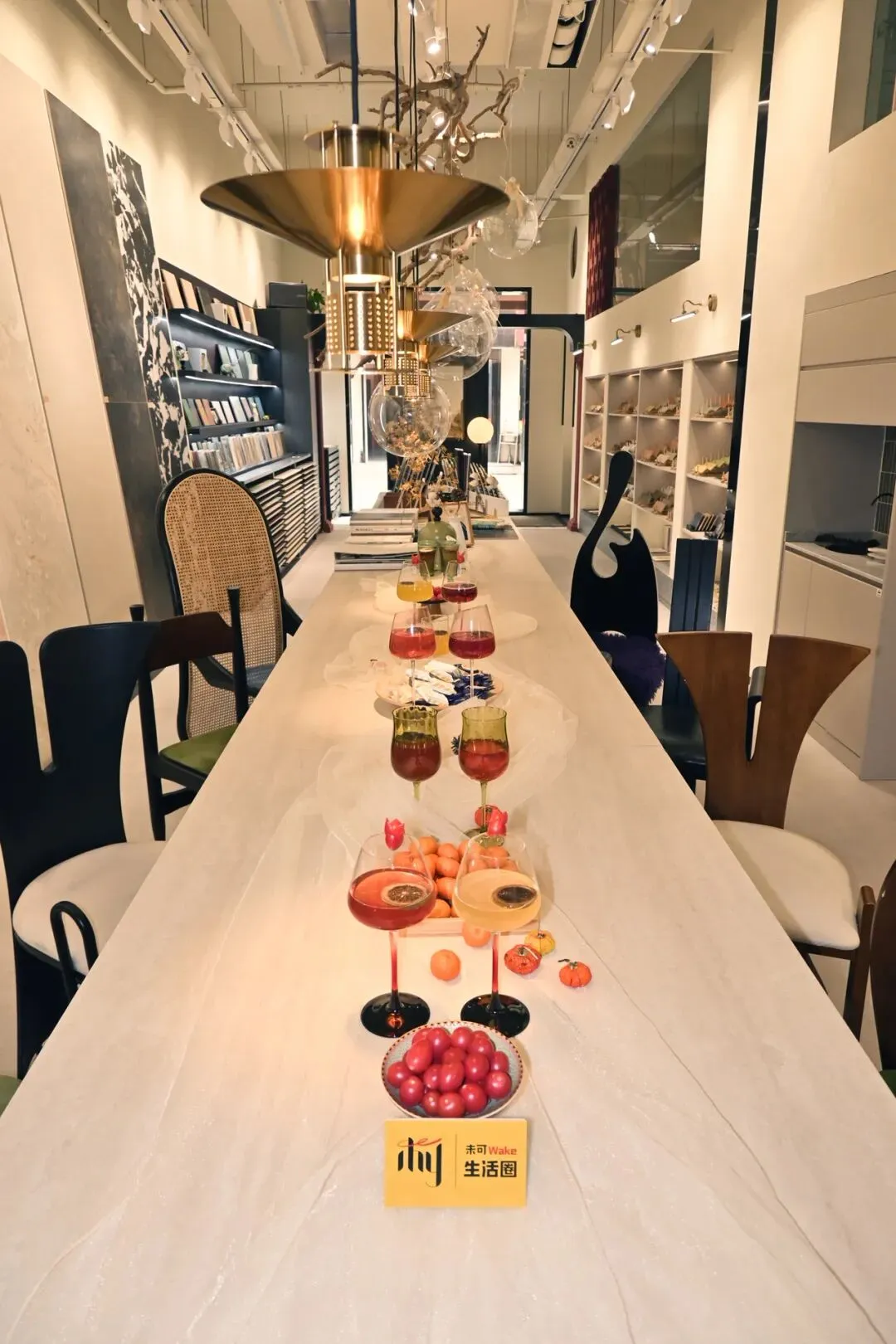 长桌之上,精致特调的酒水搭配着可爱的水果装饰,氛围感拉满,让大家在欢乐之余也能享受舌尖美味。