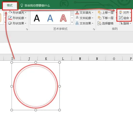选中绘制好圆形,按住CTRL键拖动再复制一个图形,然后设置大小与轮廓线条。两个图表进行对齐并组合(记得哦,是两个圆形都选中哦),如图:
