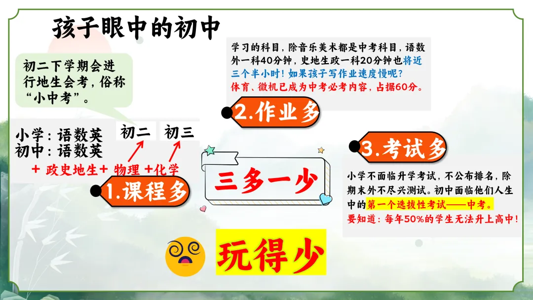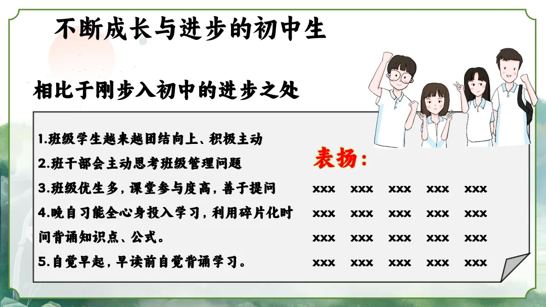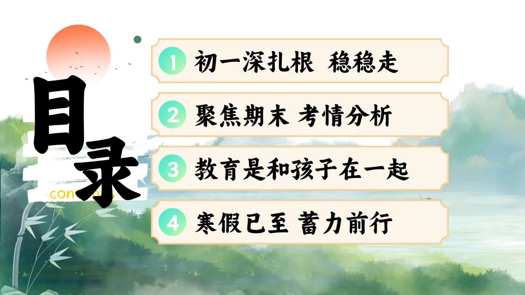 在这个岁末之际,非常感谢大家能在百忙之中抽出时间相聚于此,参加本次初一上学期的期末家长会。回首这一学期,孩子们告别小学,踏入初中校园,开启了人生一段崭新且关键的旅程。成长,仿佛一场不期而遇的奇妙冒险,悄然在他们身上发生。