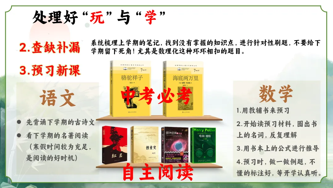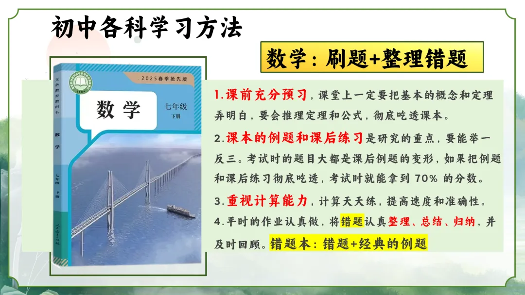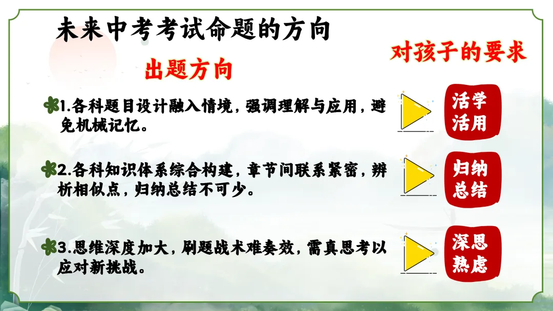 2.各科知识体系综合构建,章节间联系紧密,辨析相似点,归纳总结不可少。