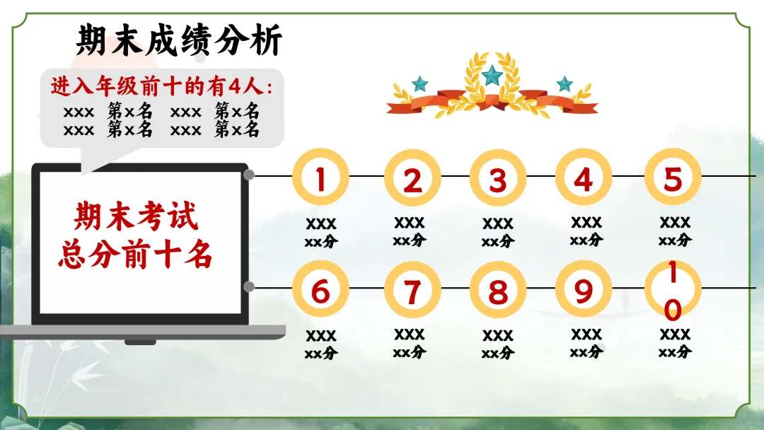 进入年级前十的有4人:xxx 第x名 xxx 第x名 xxx 第x名 xxx 第x名