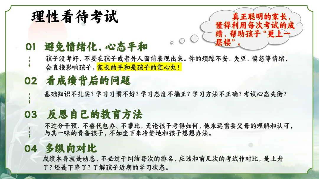 真正聪明的家长,懂得利用每次考试的成绩,帮助孩子“更上一层楼”。