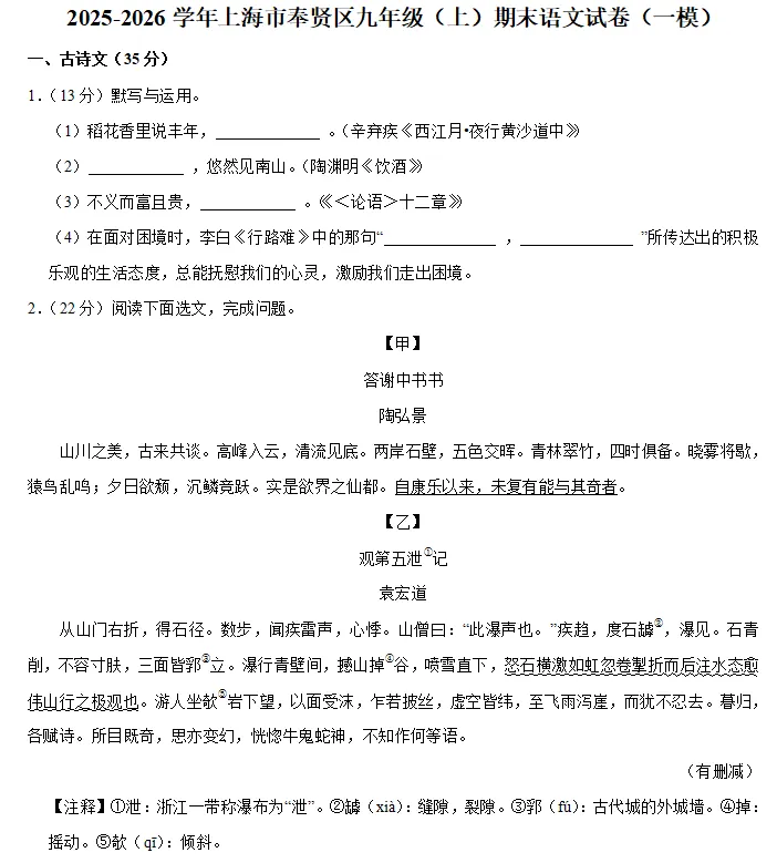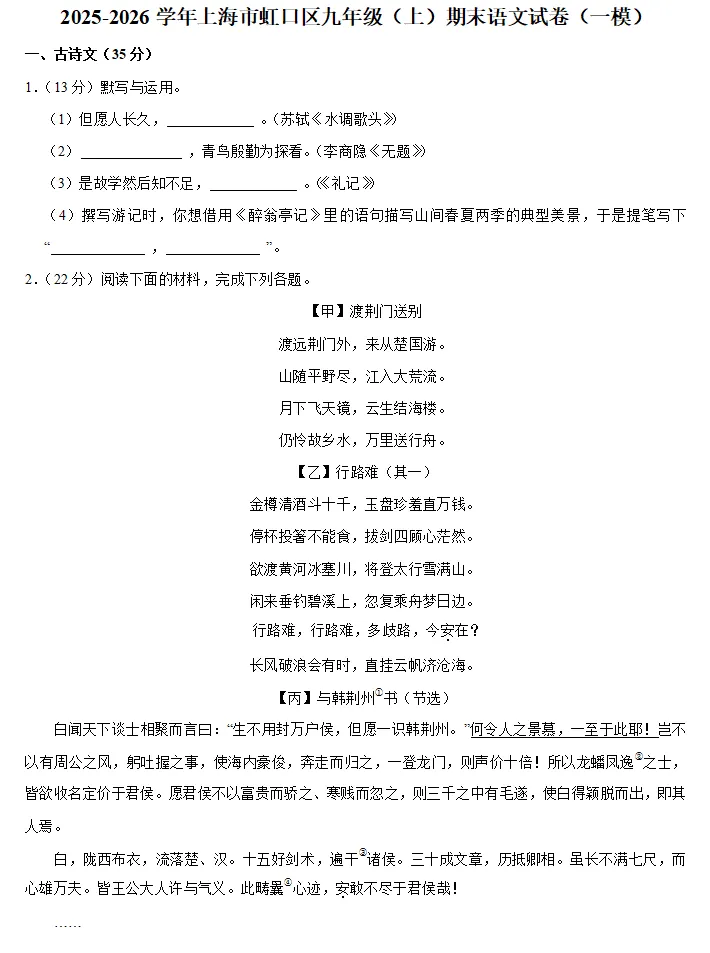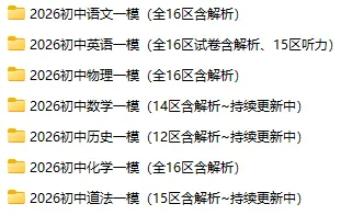 近期我们整理了2026届初三一模各科试卷,以便家长们给孩子巩固复习或者教师们教学使用。篇幅有限,部分内容展示如下:
