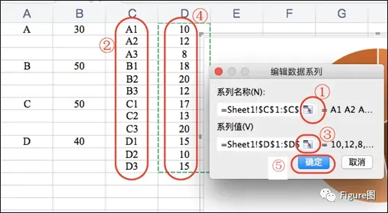 6.按照图中所示顺序及内容添加系列。