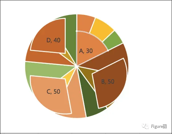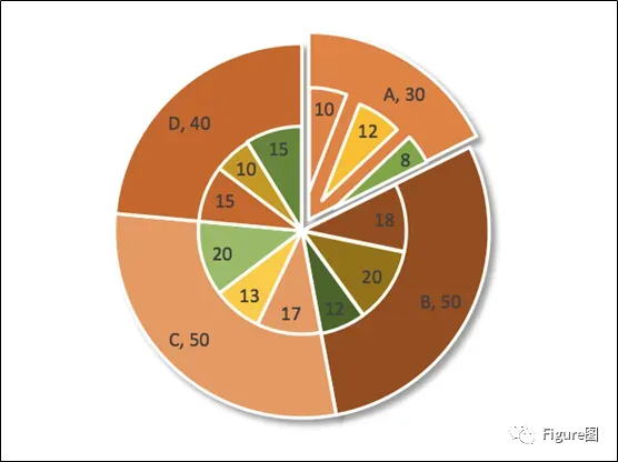 18. 此外,若想凸显其中的一组类别,那么可以将这组类别移动一定位置,显示出一定的分离。这样既是双层饼图,也是分离饼图。