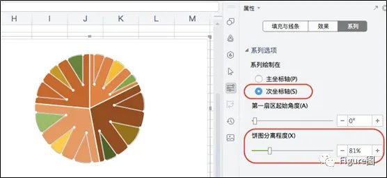 15. 接下来如果我们是将次要类别设在次坐标轴,并设置分离程度后则如下所示。
