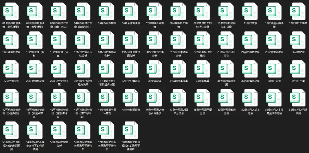 ✅ 100套常用Excel表格(报销、预算、往来账等)✅ 6大Excel财务报表自动生成工具(一键出三大表)✅ 58个财务模型库(NPV、IRR、现金流预测等)✅ 工厂自动化成本分析模板✅ 动态本量利模型分析模板✅ 产品成本核算及报价分析表✅ 企业研发成本分析表模板✅ 生产制造排程规划模板