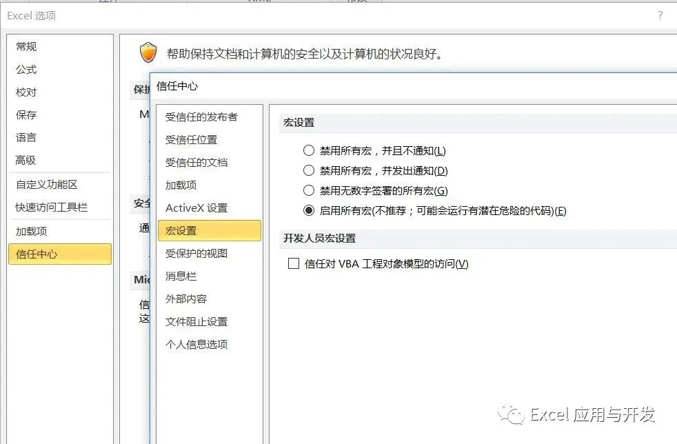 在excel 文件-选项-信任中心-宏设置-启用所有宏