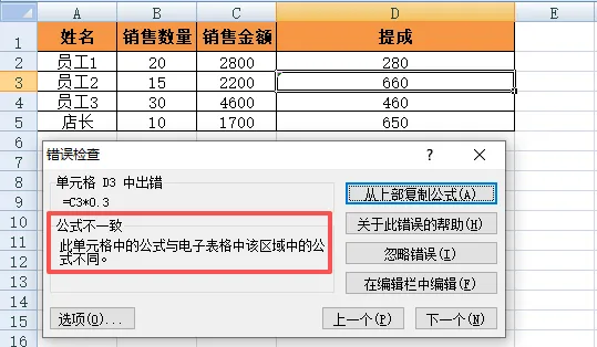 上周提过,“Ctrl+`”可以直接让整个工作表中含有公式的单元格都显示原始公式。其实这个功能在菜单栏中也有。点开“公式”,找到“公式审核”,再点击“显示公式”即可。除了“显示公式”,“公式审核”中还有很多其他的选项,今天我们来探讨下其中的“错误检查”。Excel中自带的错误检查功能,是Excel系统化排查问题的工具。它能自动识别工作表中所有显性公式错误(即之前讲过的常见错误码),并能分类错误、标注原因,同时提供修改建议。此功能可以精确识别出错误码及问题所在,并提示错误单元格位置。在输入公式时如果出现错误码又无法准确判断其原因,可以根据“错误检查”的提示来快速修正。除了我们一直在讲的错误码,公式还可能存在一些逻辑混乱的隐性错误。出现这类错误的单元格会显示计算结果,但其结果可能存在问题。这种时候,人为检查公式既耗时又耗力还未必找到问题。但,“错误检查”可以识别出各类问题。比如,在计算提成时,所有员工都按10%计算,但个别员工的提成比例误点成了30%。可以看到,公式错误的单元格中显示计算结果,不仔细排查很难发现问题。但使用此功能就能快速提示错误。有这个功能,是不是瞬间感觉检查公式好像也没那么难了~当我们点击“检查错误”以后,Excel系统会从A1单元格开始按列检查当前工作表的所有公式。有问题时会自动弹出对话框,对话框会显示错误位置与原因。第一项,会根据不同问题显示不一样的内容,它是系统自动调整公式的快捷按钮。第二项,“帮助”,可以打开官方帮助,能查看更详细的修改建议。第三项,“忽略错误”,当遇到没有问题的特殊公式时,可以使用该选项跳过,继续检查下面的内容。第四项,“编辑”,可以直接进入编辑模式,手动修改公式。注意:“错误检查”只对当前工作表有效,如果需要检查整个工作簿,需要切换到每个工作表再分别检查。在检查公式错误时,搭配“追踪”功能更好用。下周,我们继续来讲“公式审核”中的其他功能。期待下周与你相见~我们每周,一见。每周一,见。