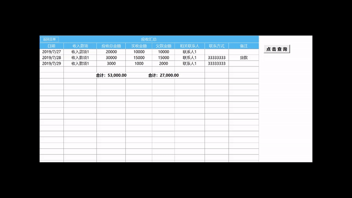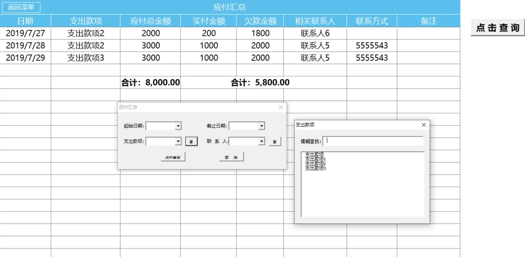 6. 系统自动汇总所有交易数据,生成应收应付报表。您可通过组合条件进行筛选查询,一键生成统计结果。