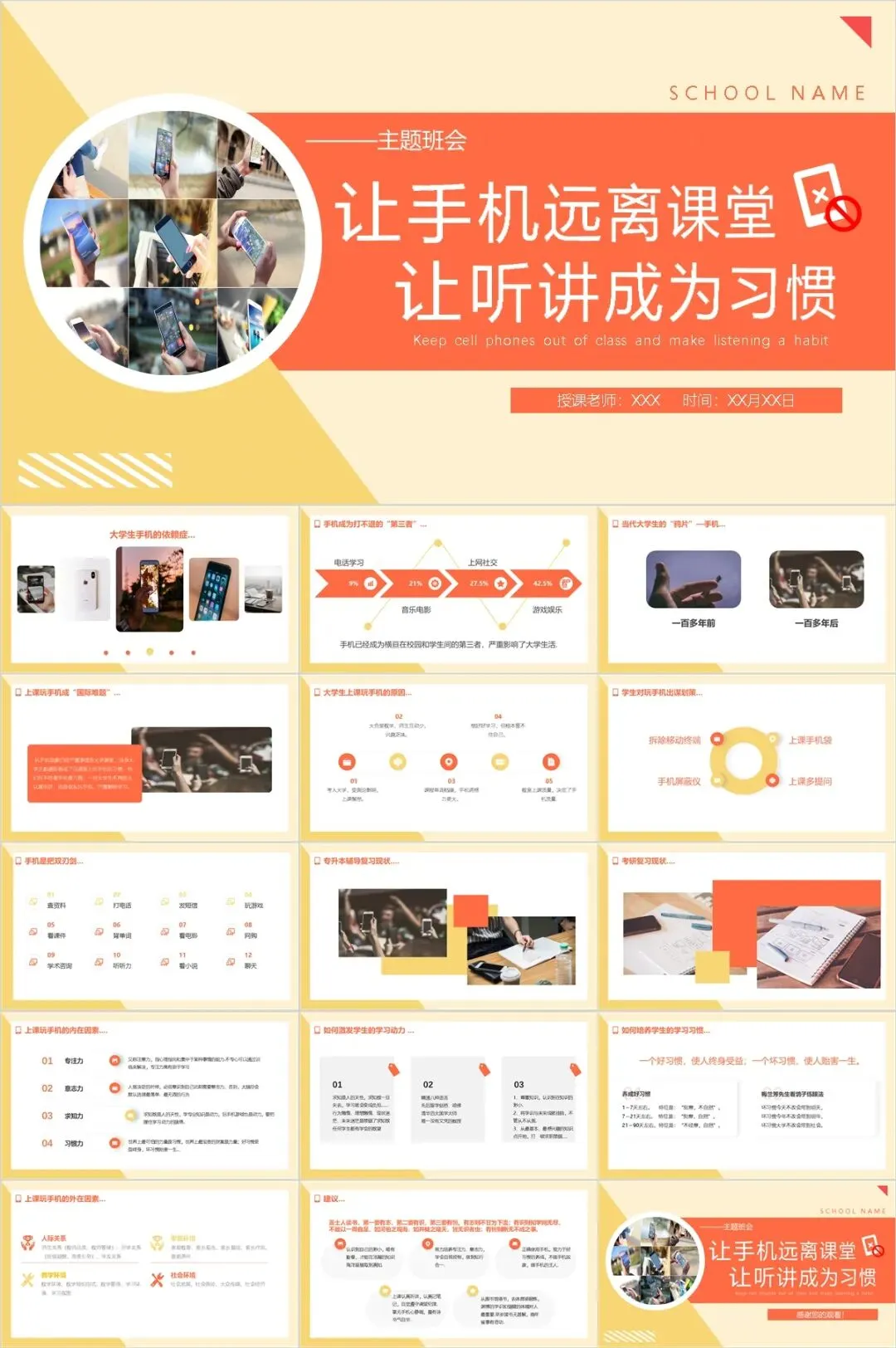 >【免费分享】12套拒绝沉迷手机PPT