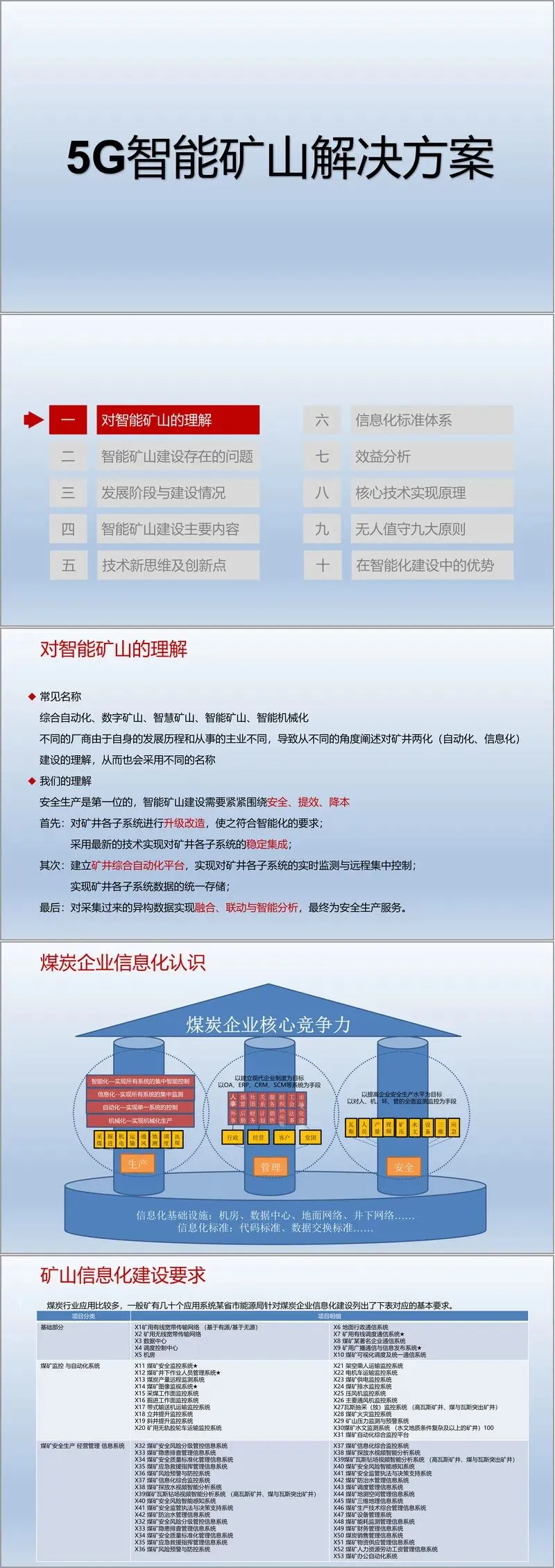 综上所述,这份《5G智能矿山解决方案》文件勾勒出一个以5G和边缘计算为神经,以数据融合与智能分析为大脑的现代化矿山蓝图,其系统性、前瞻性与实操性对推动煤矿行业转型升级具有重要参考价值。