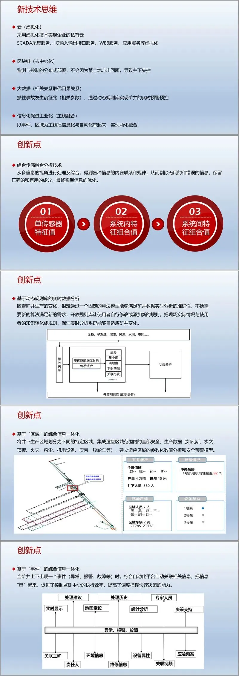 - 基于“区域”的综合信息一体化:划分井下区域,集成区域内安全、生产数据,建立区域化分析预警模型。