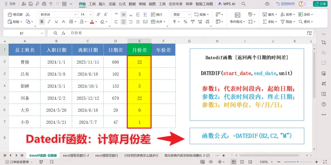 二、计算日期月份差:DATEDIF函数,轻松搞定