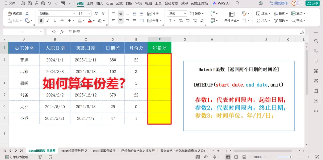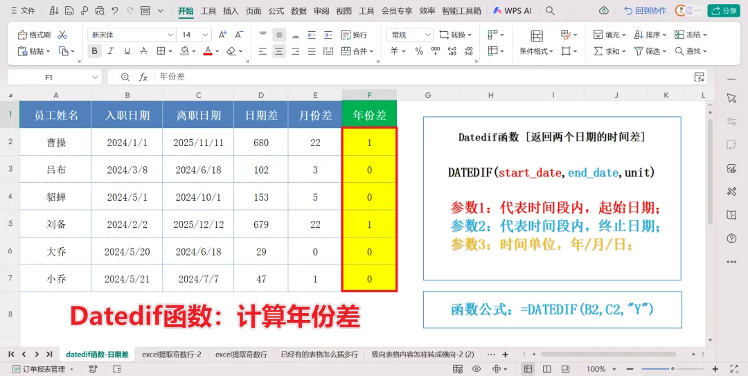 三、计算日期年份差:调整参数,一气呵成