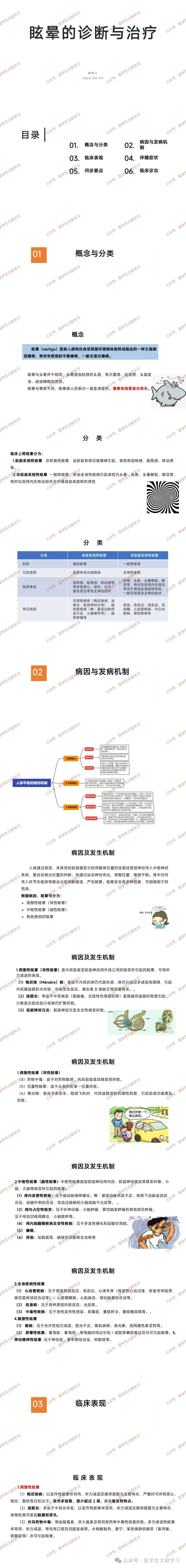 病史采集是眩晕诊治的要点,可靠的病史可为诊断提供准确方向,包括症状、起病形式、持续时间、诱发 / 加重 / 缓解因素、伴随症状、发作次数 / 频率、现病史与既往史、家族史等方面。