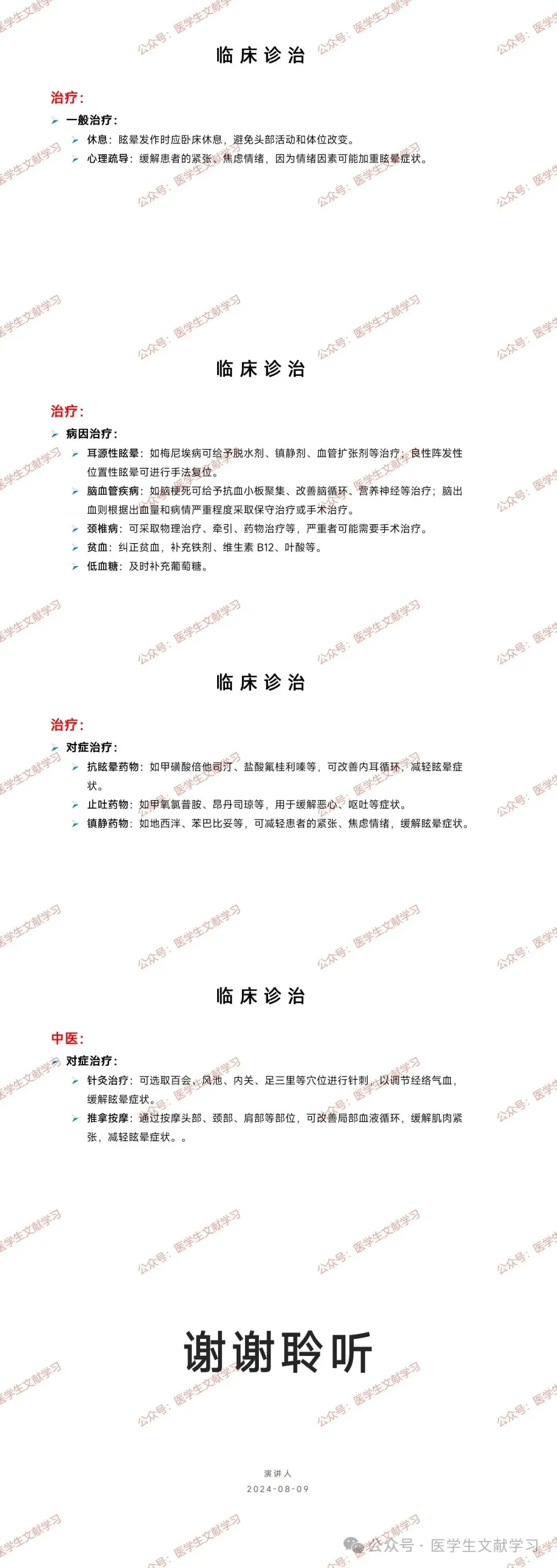 病因治疗:根据不同病因进行治疗,如耳源性眩晕(如梅尼埃病、良性阵发性位置性眩晕)、脑血管疾病(如脑梗死、脑出血)、颈椎病、贫血、低血糖等。
