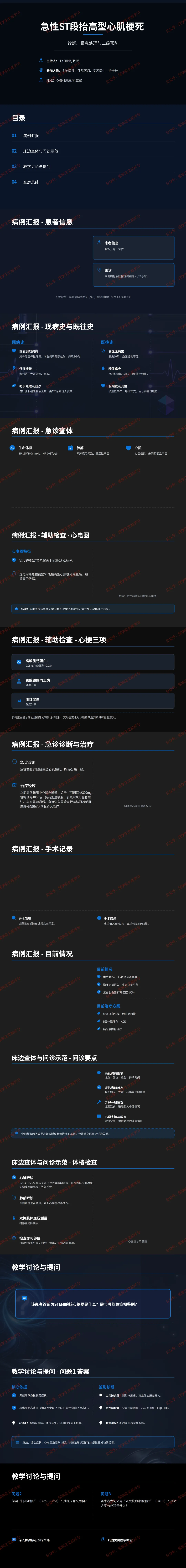 - 术后情况:胸痛消失,生命体征平稳,复查心电图 ST 段回落 > 50%,转至普通病房。