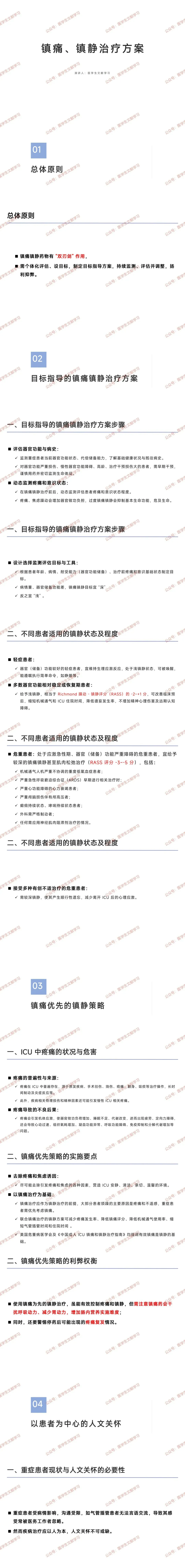 - 个性化监测评估与调整:充分了解患者基础健康状态,监测评估器官(储备)功能与镇痛镇静深度,根据实际情况及时调整治疗程度,确保治疗方案贴合患者个体需求。