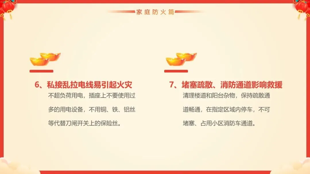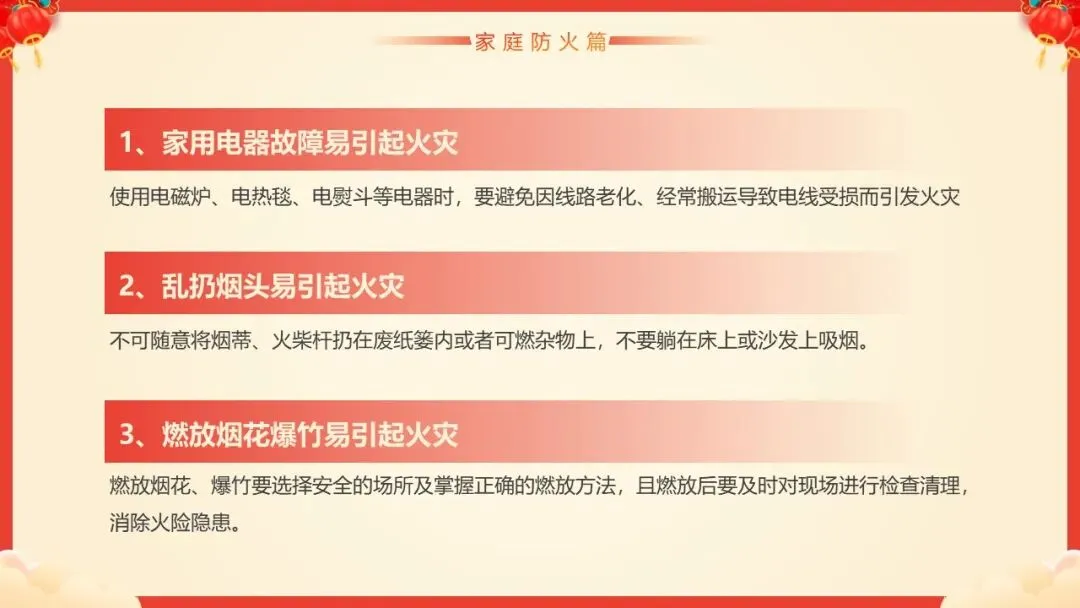 为护航万家团圆,助力企业及个人平安迎新年,“安全航行”特别整理汇总了一份《节前培训节后复工课件系列【第3套】春节节前节后课件》,从网络精心搜集并分类整合了72个实用、即用的安全教育培训课件,涵盖节前隐患排查、出行安全、居家消防、应急处理、复工复产等重点场景,助你系统筑牢节日安全防线。