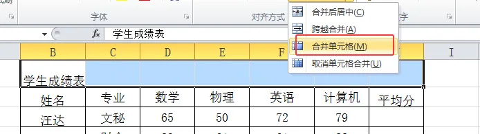 b合并单元格:若只想合并单元格,不希望内容自动居中,可选择此方式。选中要合并的单元格,点击“合并后居中”按钮旁的下拉箭头,选择“合并单元格”选项,合并后内容将保持原有对齐方式。