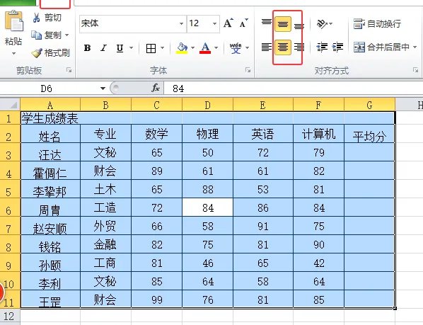 这里我们选择整个表格,当然你也可以选择一个或几个单元格进行对齐。
