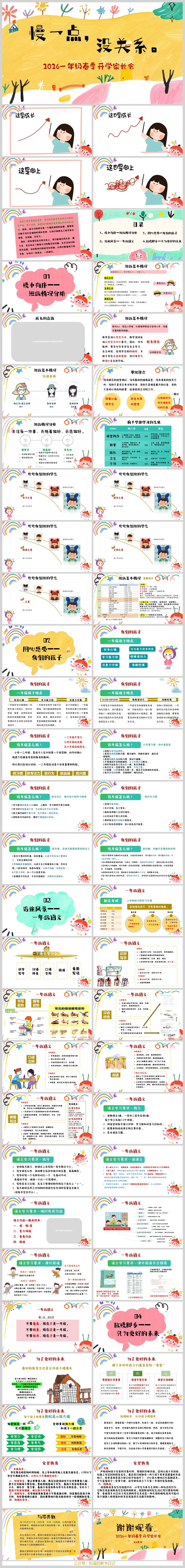今天给一年级班主任同仁们推荐一份一年级下开学家长会PPT——《慢一点,没关系》。不仅紧扣低年级学生成长规律,更用温暖的语言搭建起家校沟通的彩虹桥🌈。