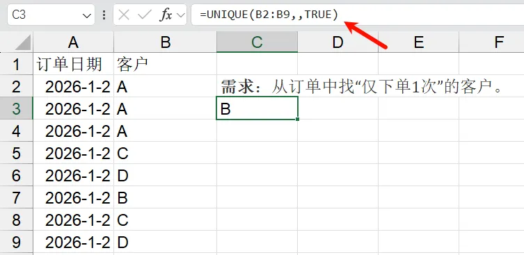 场景4:提取“仅出现一次”的值——找“特殊唯一项”