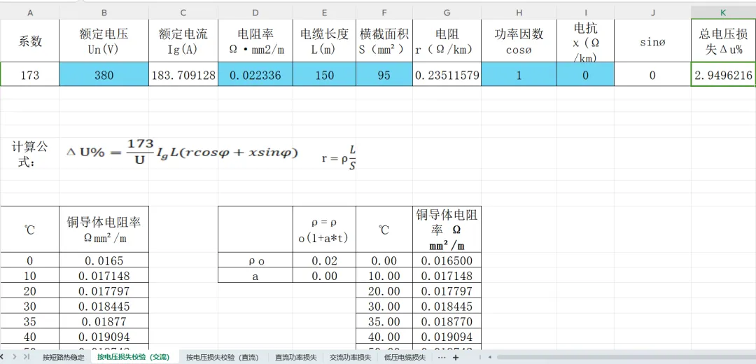 电缆计算选型校验Excel表(实用工具)