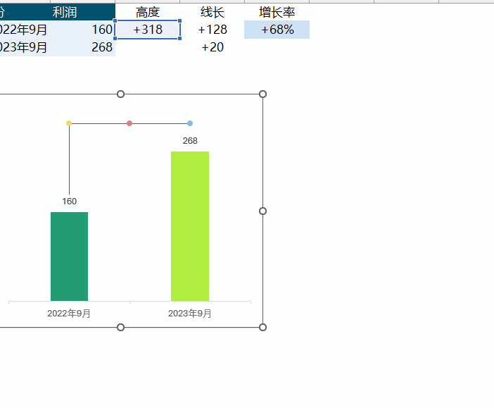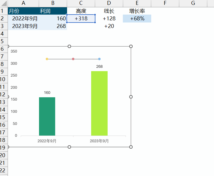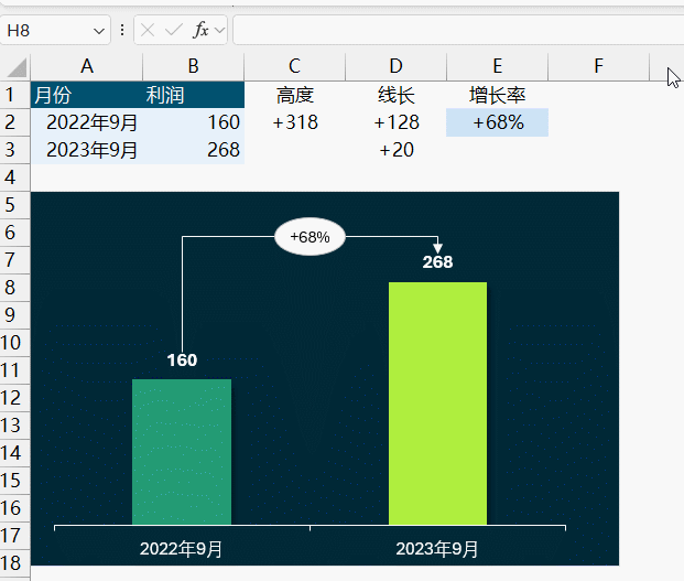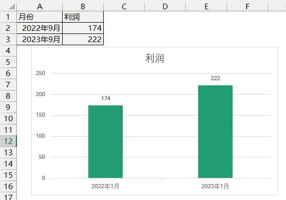 两年数据对比,估计大多数人都是直接插入一个柱形图完事。