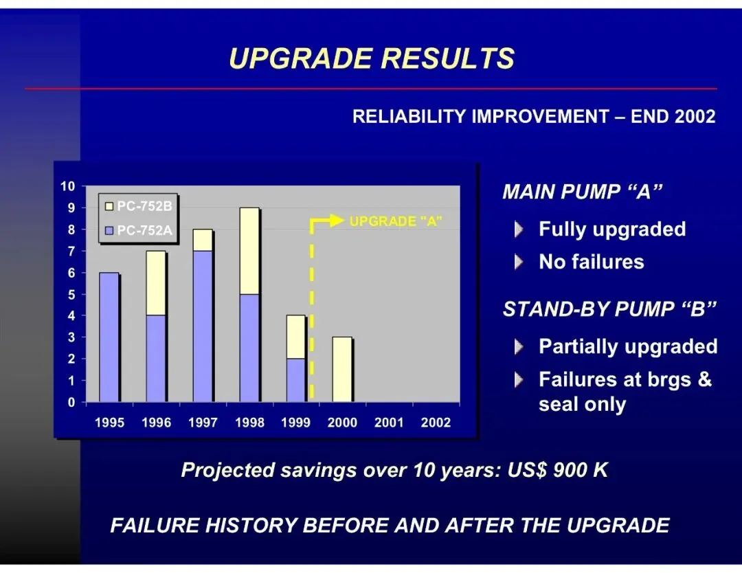 升级后成效显著:此前每年高达9次的故障已完全消除,目前该泵已实现连续运行3年无故障。设备可靠性得到极大提升,同时大幅节省了投资和维护成本。