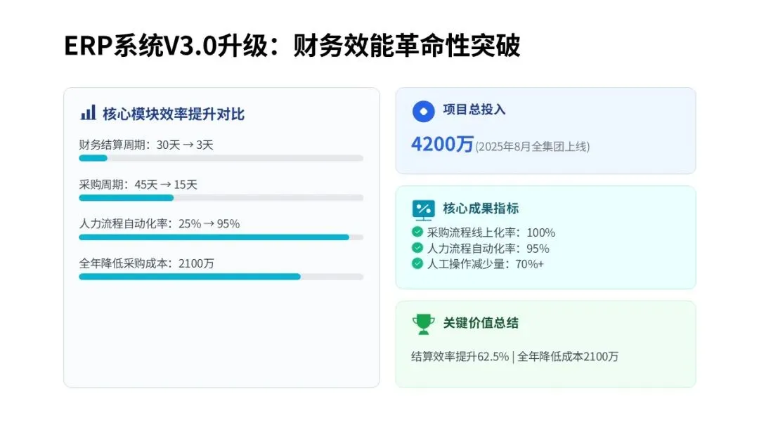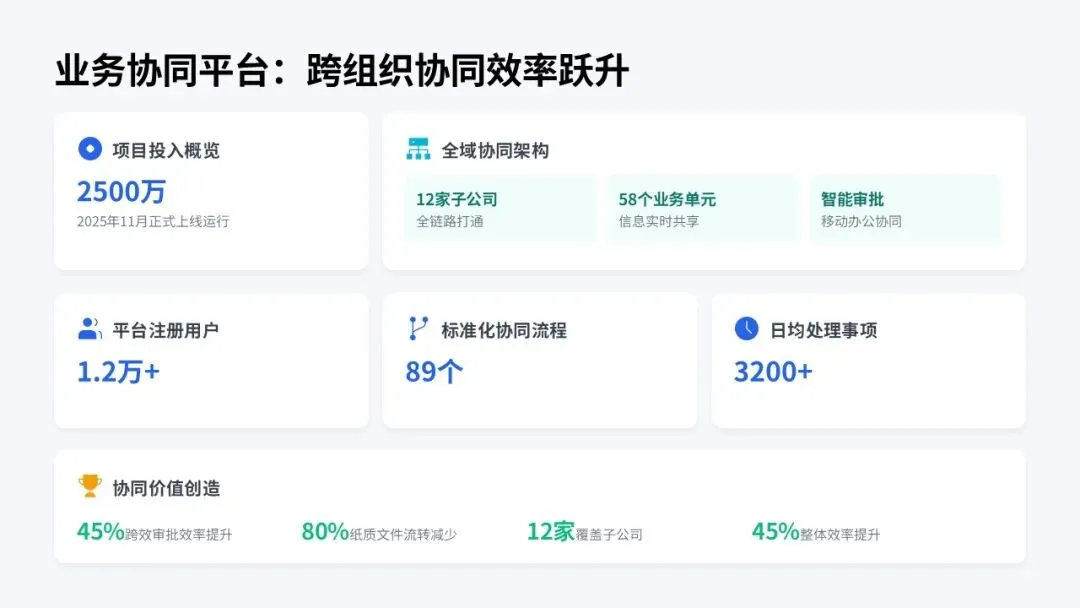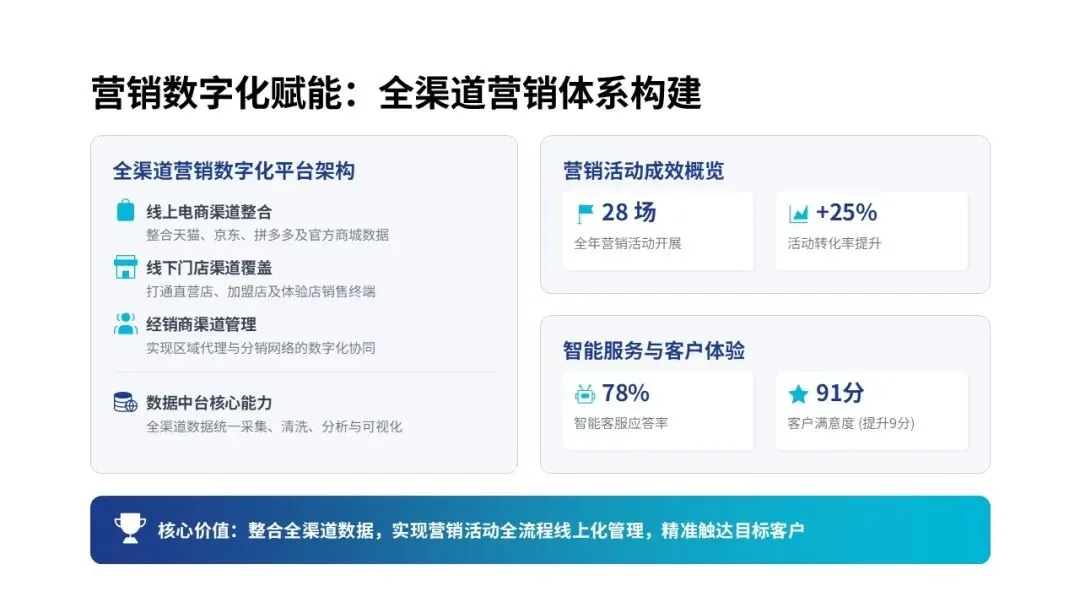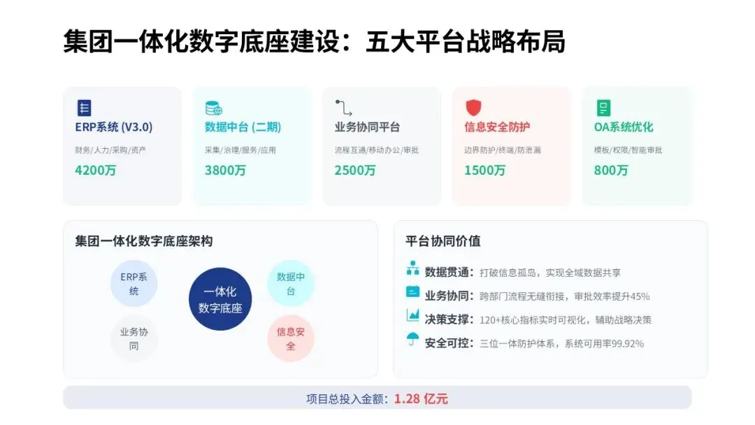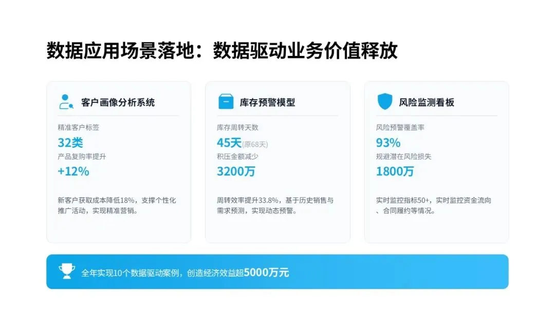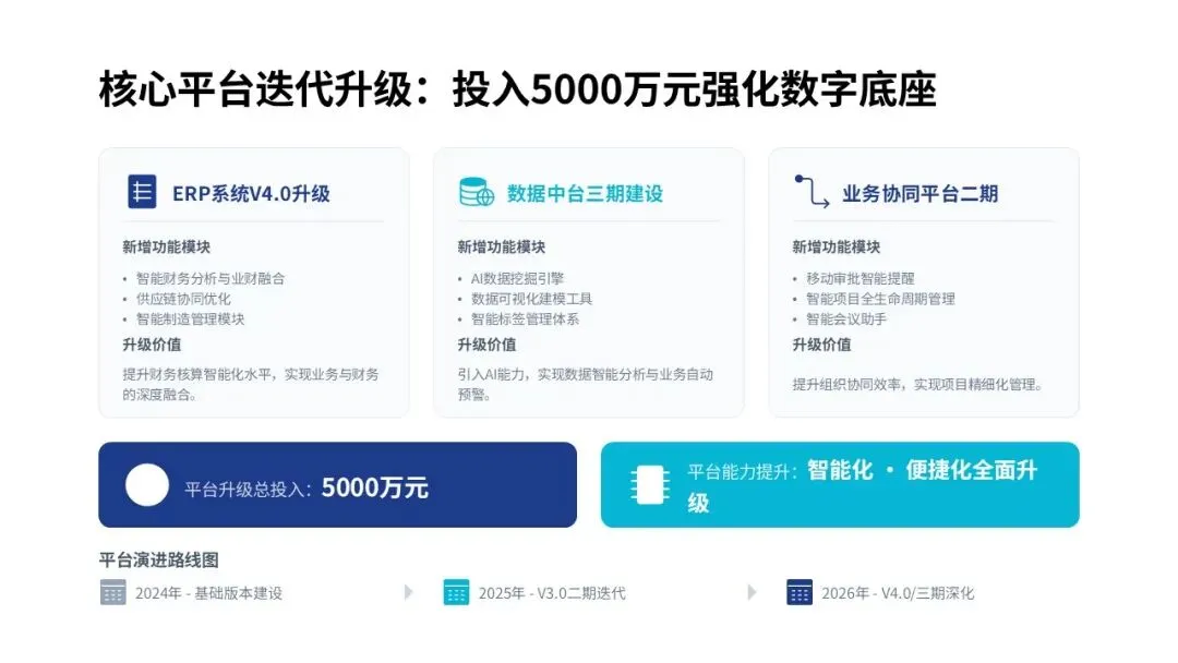 一年来,我们累计投入1.8亿元,推动了32个专项数字化项目落地。从ERP系统V3.0的全面升级,到数据中台二期的成功建设,再到业务协同平台的高效运转,我们构建了覆盖财务、人力、营销、供应链、生产等核心领域的“五大平台”战略布局。这不仅是技术的升级,更是管理模式和业务流程的深刻变革。业务价值的深度释放