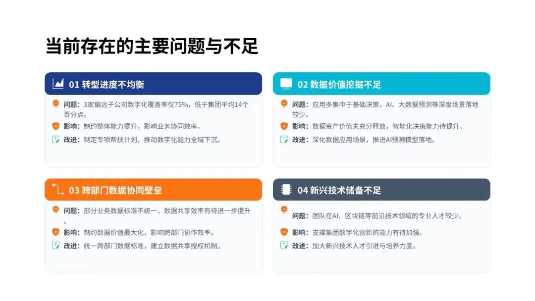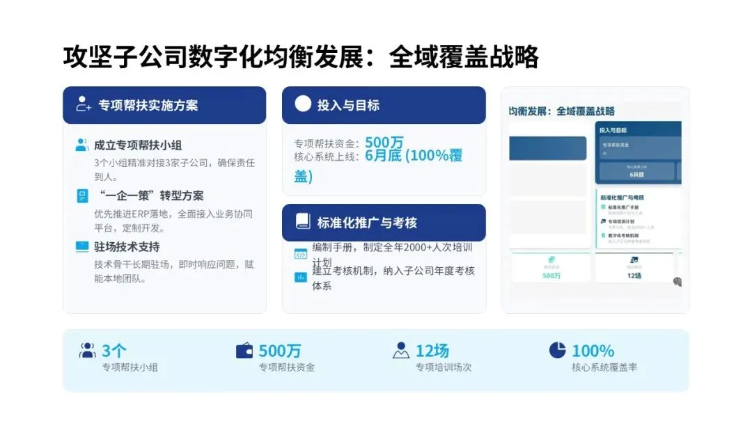针对发展不均衡的问题,我们将启动“全域覆盖战略”,投入500万元专项帮扶资金,确保在6月底前,让核心数字化系统在所有子公司100%上线,不让任何一个兄弟单位掉队。深挖数据,驱动智能决策
