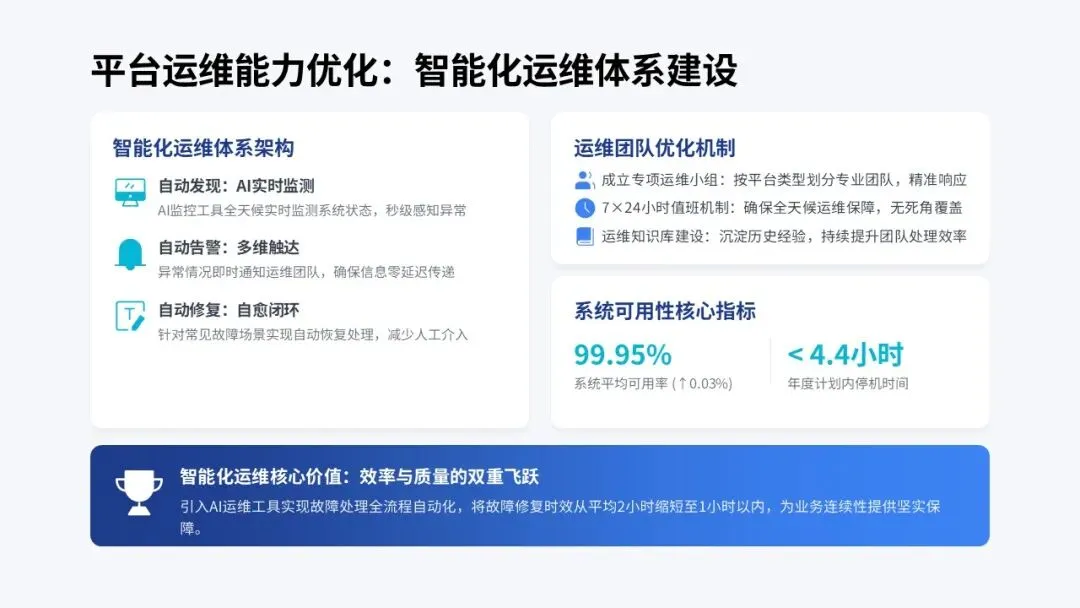我们将持续加大对核心平台的升级投入,并前瞻布局AI创新平台和物联网(IoT)平台。通过引入前沿技术,我们不仅要提升现有业务的效率,更要孵化新的业务增长点,构筑面向未来的核心竞争力。业务创新,激活增长引擎