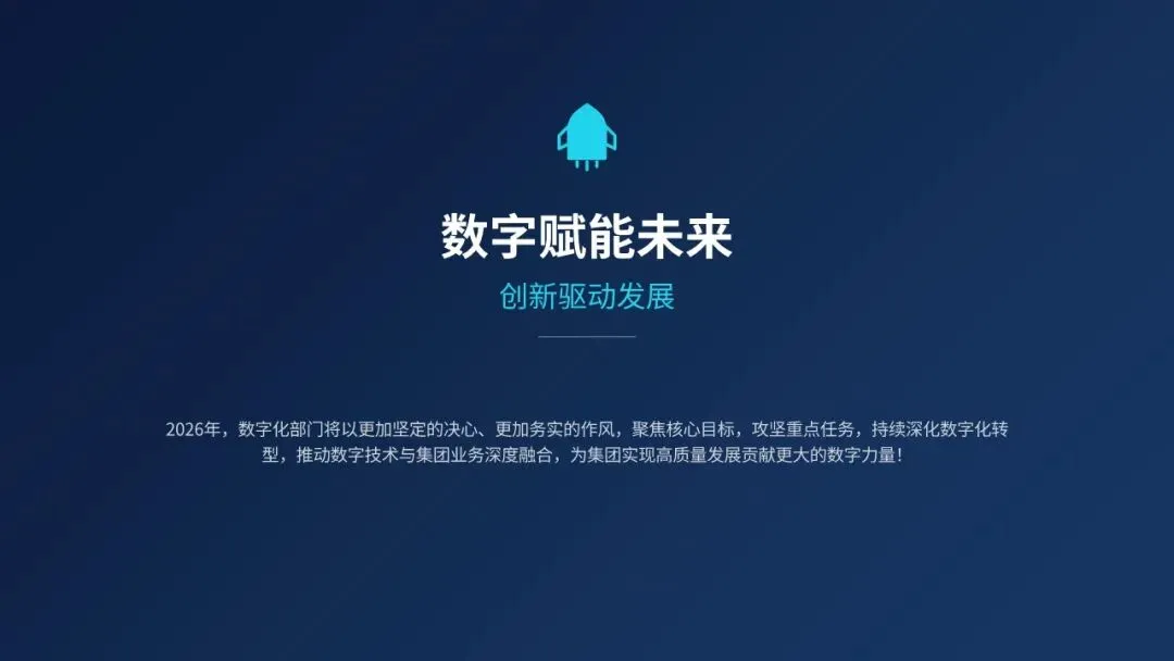 数字化转型,安全是底线。我们投入1500万元,构建了涵盖边界、终端、数据的“三位一体”安全防护体系,全年成功拦截12.3万次恶意攻击,实现了零重大信息安全事件的目标。常态化的安全巡检和高效的应急响应机制,为我们的数字化航船保驾护航。当然,我们也清醒地认识到,在前进的道路上,依然存在子公司发展不均衡、数据价值挖掘不够深入、跨部门协同有待加强等挑战。这些问题,正是我们2026年需要攻坚的重点。二、展望2026:以数智为帆,向未来远航