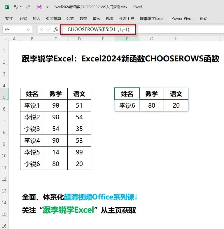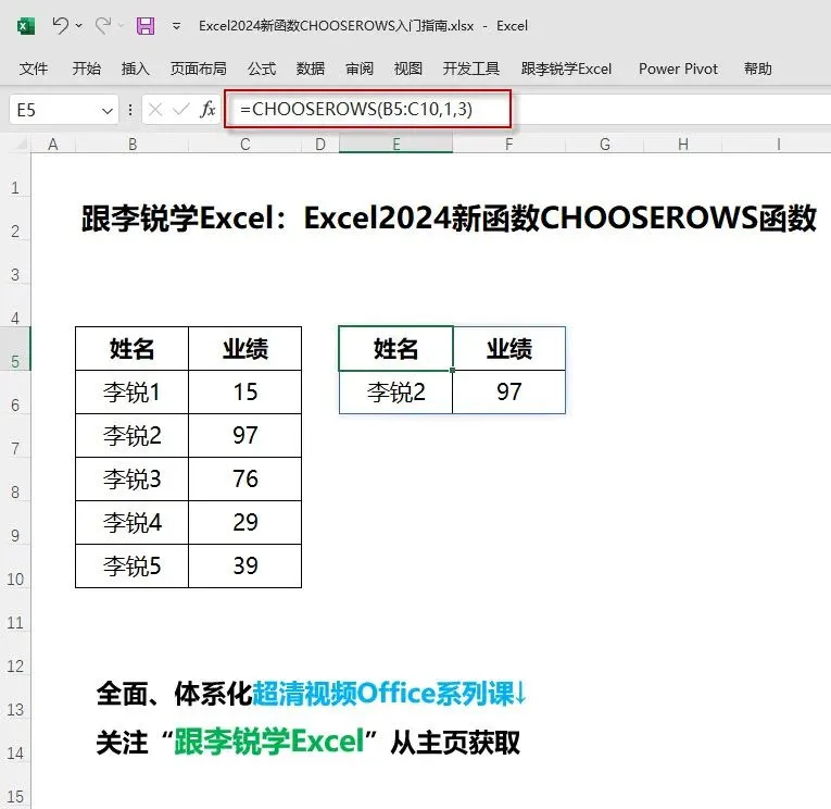 Excel 2024新增的CHOOSEROWS函数,可以帮你从一个数据区域中选择并返回指定的行数据。